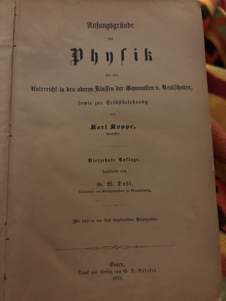 Mal schauen…dieses Buch ist aus einer Zeit vor Einstein (wenn man vom Teufel spricht, gerade kommt er rein und meckert rum, weil ihm draußen die Pfoten abfrieren. Er ist jetzt Kater, BKH, so wie die Grinsekatze, und wohnt bei uns). Und Heisenberg….und Bohr…unvorstellbar! Ich bin froh, dass ich denken darf, wie ich jetzt denke, mit all den Erkenntnissen des 20. Jahrhunderts. Vielleicht ist heute doch ein ganz kleiner Teil ein wenig besser…)